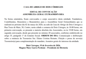 CASA DO ABRIGO DE DOIS CÓRREGOS – EDITAL DE CONVOCAÇÃO