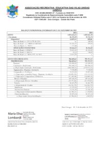 ASSOCIAÇÃO RECREATIVA EDUCATIVA DAS VILAS UNIDAS(AREVU) – BALANÇO PATRIMONIAL